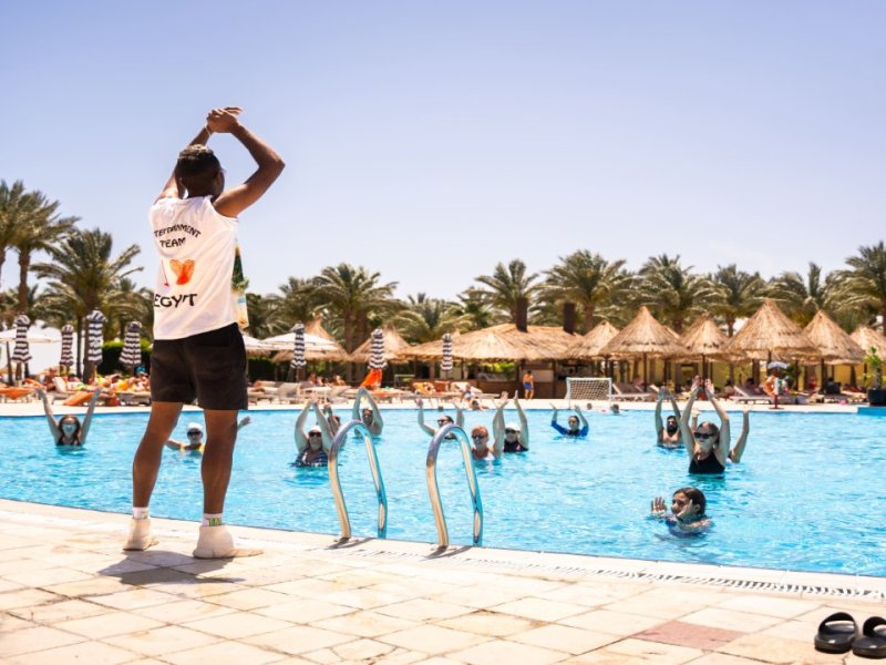 kulečník, volejbal, stolní tenis, vodní volejbal, šipky, aerobik, denní a večerní animační programy, živá hudba a show dle programu
