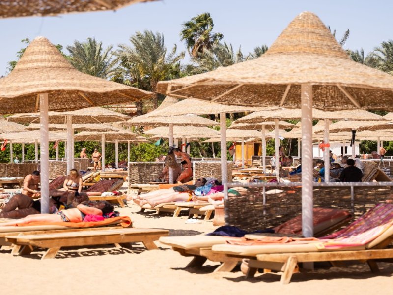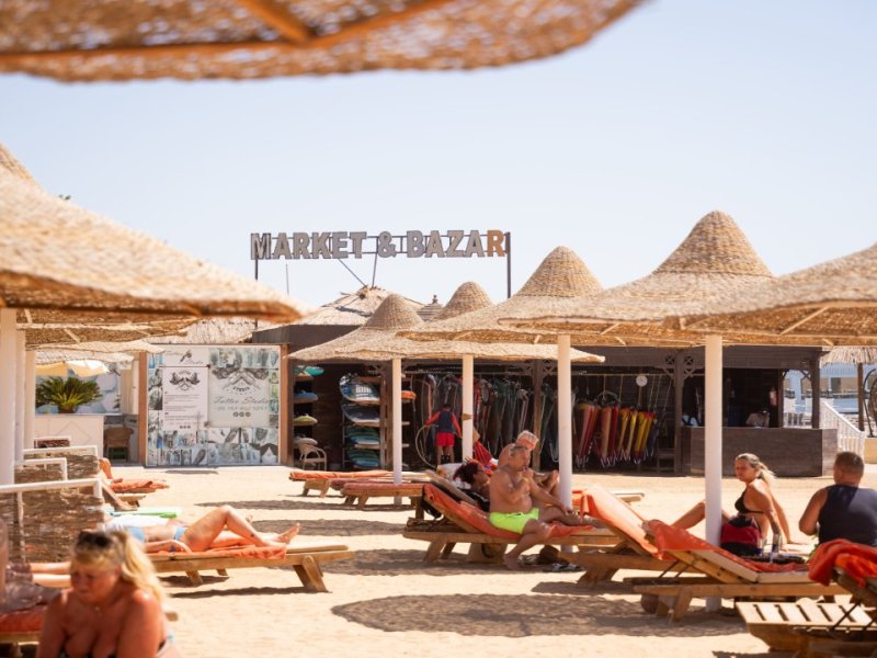 lehátka, matrace, slunečníky a plážové osušky jsou k dispozici zdarma.