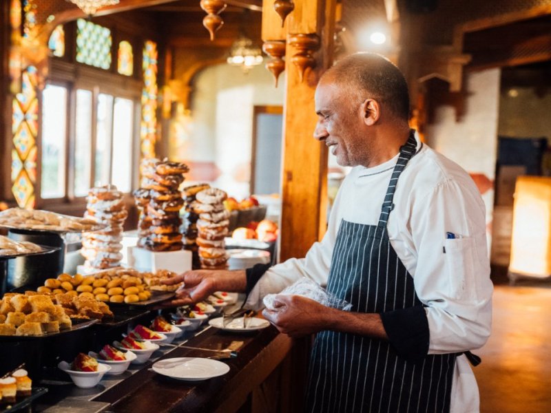 Snídaně, obědy a večeře formou bufetu (Shams, Amar a Oasis restaurace) či v a la carte restauracích v Siva Mall. Během dne je nabízeno lehké občerstvení a snacky, nealkoholické a lokální alkoholické nápoje, teplé i studené nápoje jsou k dispozici od 10:00 do 24:00. V hotelu je i mnoho barů - Le Terrace, Beach Bar, Pool Bar, Pub Bar, Coctail Bar, Siva Lobby Bar
