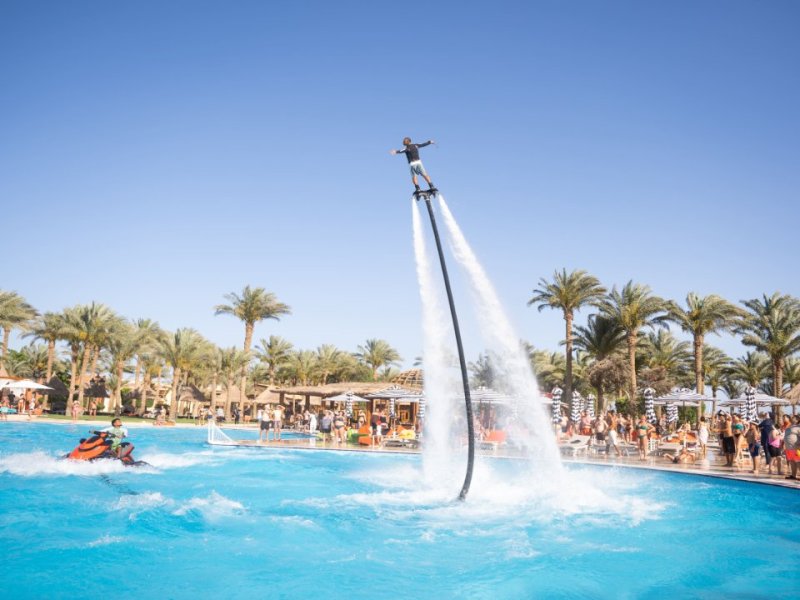 vstupní halou s nonstop recepcí, dvěma hlavními restauracemi, šesti à la carte restauracemi, plážovou restaurací, sedmi bary, dva snack bary, orientální kavárnou, sportovním barem, obchodem se suvenýry, terasou na slunění, hlavním bazénem (vyhřívaným od listopadu), dětským bazénem (vyhřívaný), dětským hřištěm. Plážové osušky jsou připravené v praktické plážové tašce přímo na pokoji. V hotelu dále naleznete lékařskou péči a mini bar za poplatek.