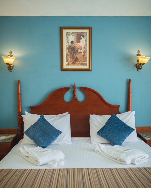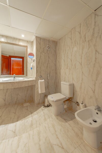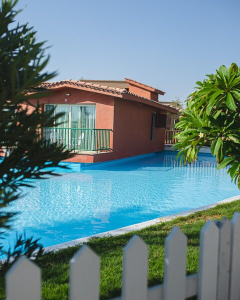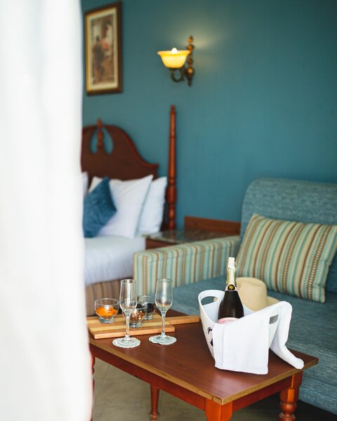 Dvoulůžklové pokoje v hlavní budově i bungalovy mají sprchu, vanu, WC, fén, klimatizaci, telefon, TV, terzor, minibar, balkon nebo terasu.