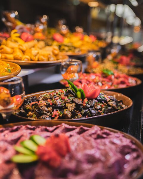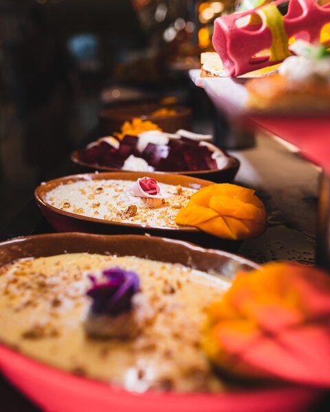 Snídaně, oběd a večeře formou bufetu, odpolední občerstvení s kávou a zákusky, místní alko a nealko nápoje od 10:00 do půlnoci, denně doplňovaný mini bar (voda a nealko nápoje). Dvakrát týdně možnost večeře v a la carte restauraci (nutná rezervace).