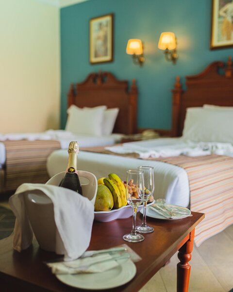 Rodinné pokoje mají stejné vybavení jako dvoulůžkové pokoje, jsou však větší a nabízejí možnost dvou přistýlek (rozkládací gauč).