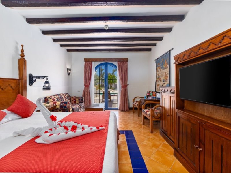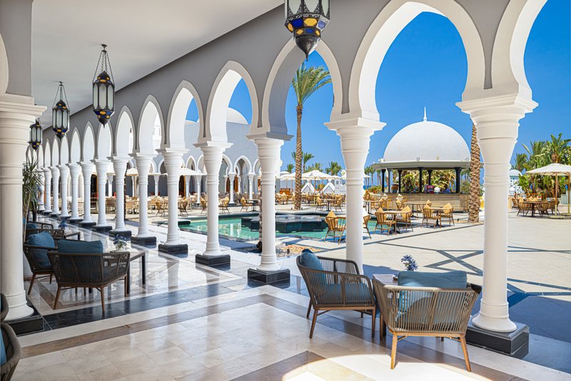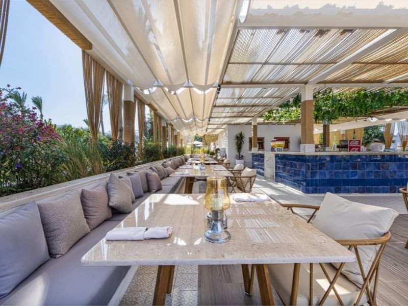Sestává z hlavní budovy a několika dalších budov, vstupní hala s 24hodinovou recepcí, lobby, hlavní restaurace, 3 à la carte restaurace, 3 bary, 2 snack bary, terasa na slunění, rozlehlý bazén (v zimě vyhřívaný dle vnější teploty na 26° C) a dětský bazén, kurzy potápění a windsurfing. Plážové osušky jsou připraveny v praktické plážové tašce přímo na pokoji.