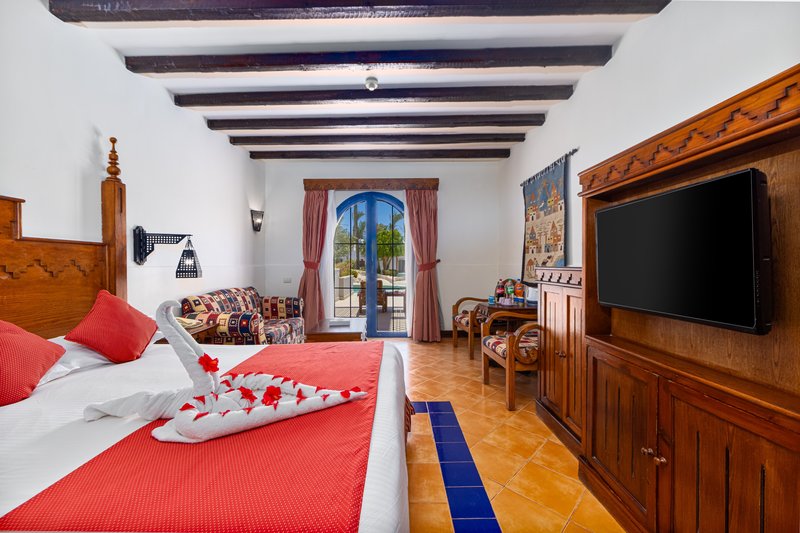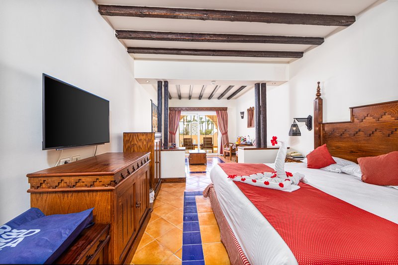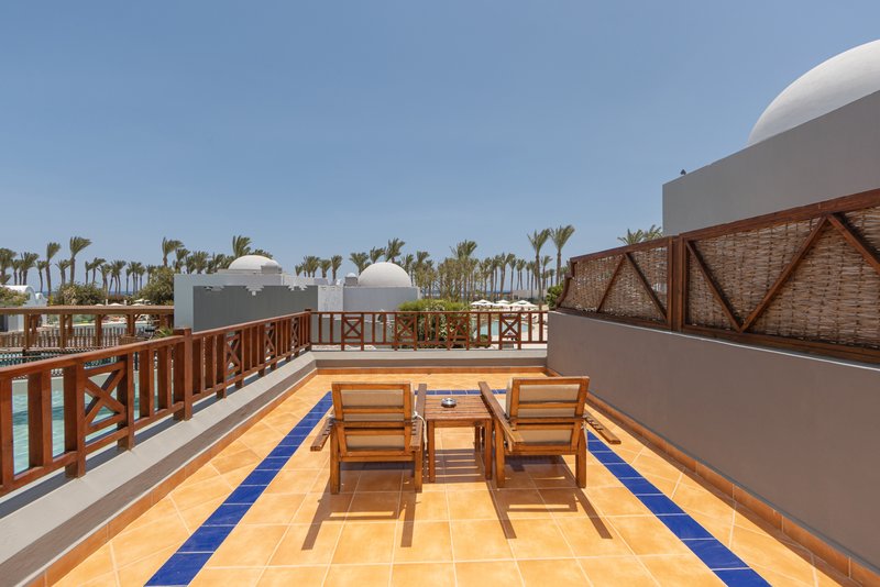má koupelnu s vanou, WC a fénem, klimatizaci, trezor, satelitní TV, mini bar (za poplatek), balkon nebo terasu, oddělené sezení.